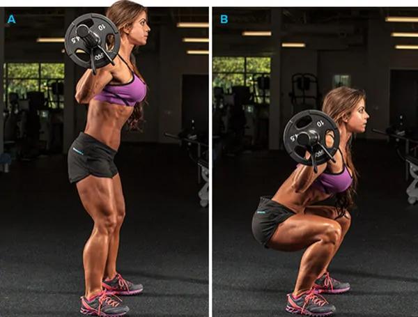 Также можно делать упражнение с весом, используя блин от штанги. Удерживайте его руками, прижав к груди.