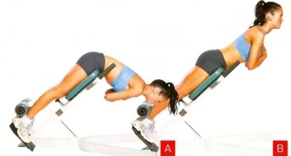 Упражнение гиперэкстензия отлично нагружает большую ягодичную, если правильно выполнять его технически. Важно, чтобы тело было под наклоном (тренажеры с горизонтальным расположением тела не подходят). Ключевым моментом является расположение таза. Он должен находится над подушками, в свободном положении.