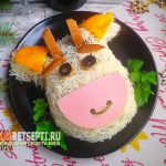 Добавить измельченные продукты: красный перец и чеснок. Разместить их в центре салата.