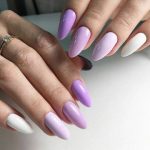 Маникюр фиолетовый с серебром — это выбор для вечеринки или дискотеки. Маникюр голубой с серебром подойдет для романтического свидания, летнего отпуска или образа Снежной Королевы. Фольгой можно украсить один или несколько ногтей. На всех пальцах фольга красиво выглядит на светлой основе.