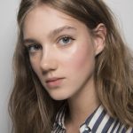 Сухим скульптурирующим средством подчеркните скулы. На «яблочки» щек кистью нанесите румяна – для этой цели можно использовать розовые тени из той же палетки.