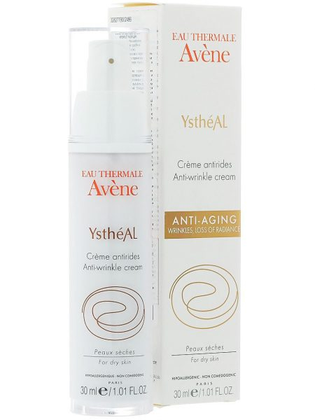 - Avene Ystheal. Крем можно наносить даже на чувствительную кожу, склонную к аллергическим реакциям. В его состав входит ретинальдегид, который разглаживает морщины. Цена — 1800 рублей.