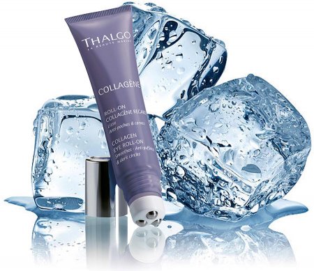 • Thalgo Collagen Eye Roll-on (Франция). Данное средство представляет собой коллагеновый гель для конутра глаз, оснащенным роликовым аппликатором. Это средство создает эффект ледяных кубиков, устраняя мимические морщины, темные круги и отечность под глазами. Его активные компоненты – экстракт дрожжей, кофеин-24 часа и натуральный морской коллаген разглаживают и увлажняют кожу в области глаз.